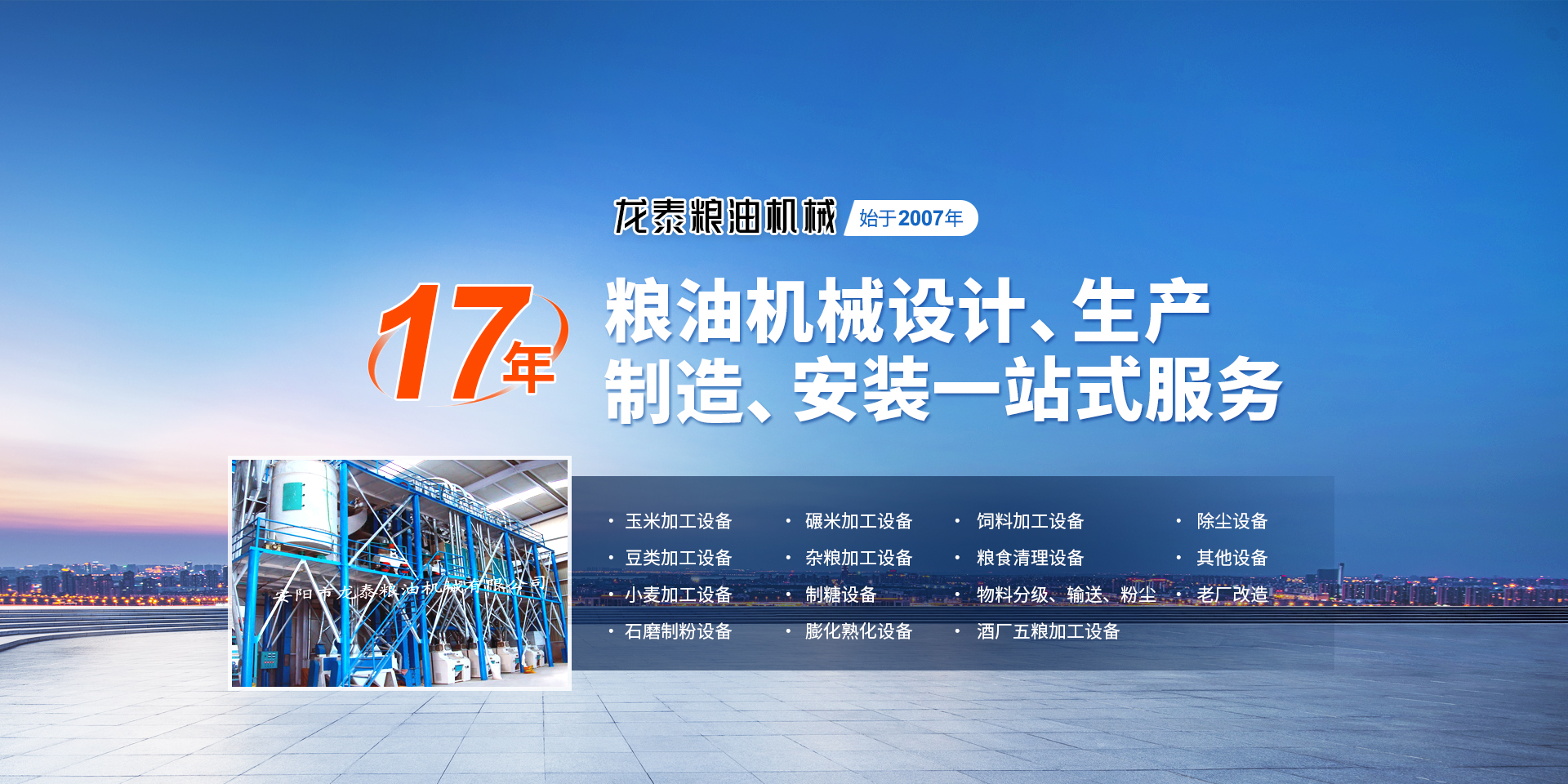 安陽市龍?zhí)┘Z油機械有限公司是一個集糧油機械設計、生產制作、安裝于一體的設備制造商。公司坐落于農業(yè)生產基地河南省安陽市。多年來,公司與科研機構建立了廣泛的技術協作關系,精心致力于糧食加工設備的技術創(chuàng)新與應用,產品涵蓋整套碾米機械、小麥加工設備、玉米加工設備、雜糧加工設備,飼料加工及油脂設備等多個領域。可承接全套的交鑰匙工程,提供從資金預算,整體規(guī)劃,土建設計,設備制造、安裝、培訓,售后保障等一站式服務。  我公司擁有獨立自主進出口權及產品原產地注冊證書。產品除國內市場外,多次出口到,亞洲,非洲,南美洲、東歐等多個國家及地區(qū)。為國內外多家企業(yè)提供了工藝先進,技術過硬,節(jié)能的糧油設備,深得國內外客戶的一致好評。  公司以“質量就是生命”為宗旨,根據客戶不同需求,采用合理的技術方案,為客戶量身打造投資建廠方略,爭取實現高收益。公司生產過程嚴格按照合同和圖紙設計要求,生產符合設計標準、檢測標準、質量優(yōu)良的產品供給客戶,并提供安裝、調試、培訓,保修期免費維修,終身免費咨詢等服務,確保設備在長期使用中穩(wěn)定運行。  龍?zhí)?愿與您一起攜手共創(chuàng)輝煌!